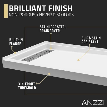 With its stylish good looks and sturdy construction, our ANZZI line delivers everything you want in a shower base. We crafted it from premium ANR material, a super-durable blend of resin, fiberglass and stone filler that’s stronger and lighter than both artificial stone and acrylic. The specially textured, slip-resistant floor surface gives you safe and secure footing so you can shower with confidence, while the moisture resistant construction protects against mold, mildew and odor.