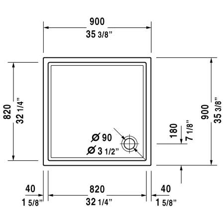 - Drain Size: 3-1/2″ (diameter of drain outlet)