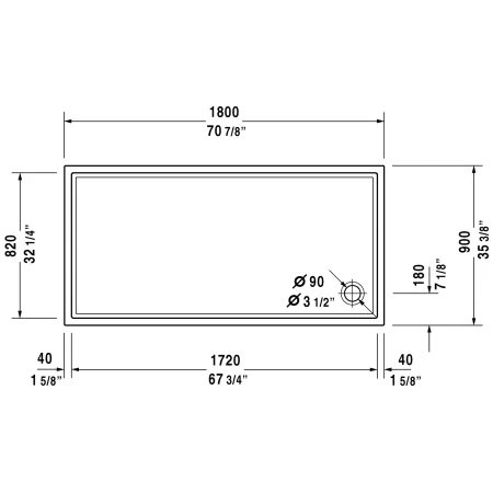 - Drain Size: 3-1/4″ (diameter of drain outlet)