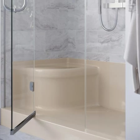 The Aquatique Threshold Shower Base is a powerful and stylish statement in any bathroom. Its practical design and low threshold provide easy access to the shower. The durable acrylic and fiberglass reinforcements make the shower base a robust selection. Equipped with a seat, this shower provides comfort and secure footing for a luxurious experience.